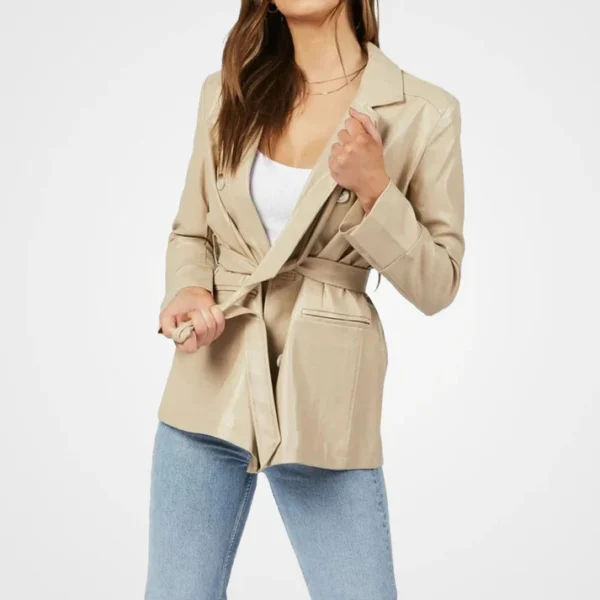 This coat is not only beige leather but also a matter of style. A beige coat will never be out of fashion, but right now it is so trendy that nothing will add more elegance to your look than a beige coat. Be it going to the office, a formal dinner, or a casual brunch, this beige coat will fit all those diverse occasions. It is a flexible necessity rooted in beauty and functionality.