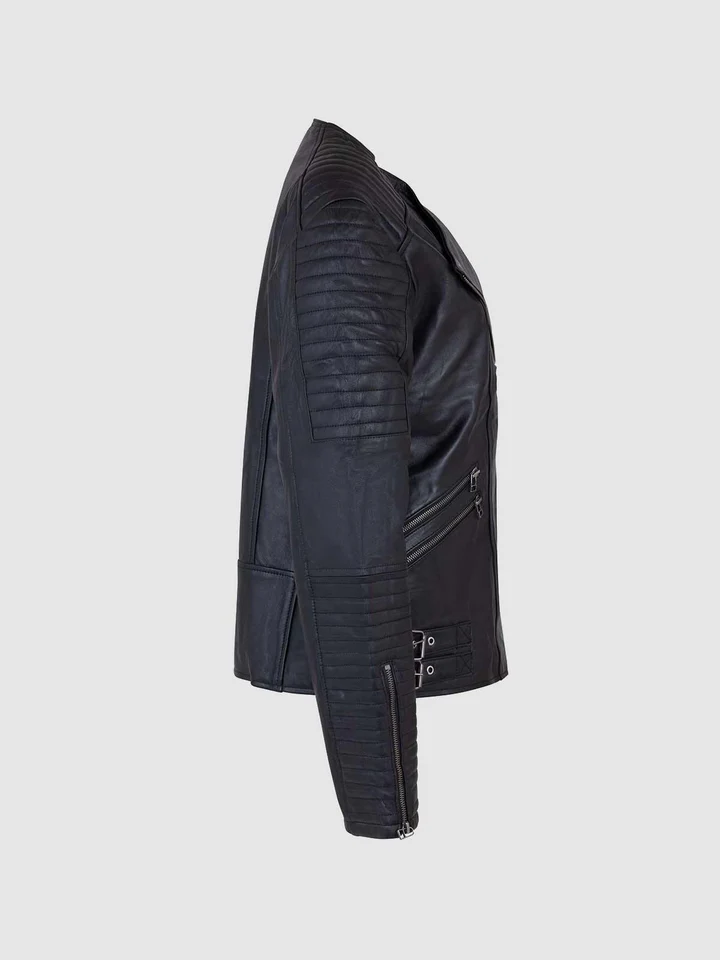 A versatile jacket isn’t merely a garment; this object is a purchase of style. The quilted work makes it unique and different as compared to the normal leather jackets, but the black color maintains a classic and versatile aspect. Fashionable, tough, and easy-to-wear, it will be a jacket that you would access twice a year.